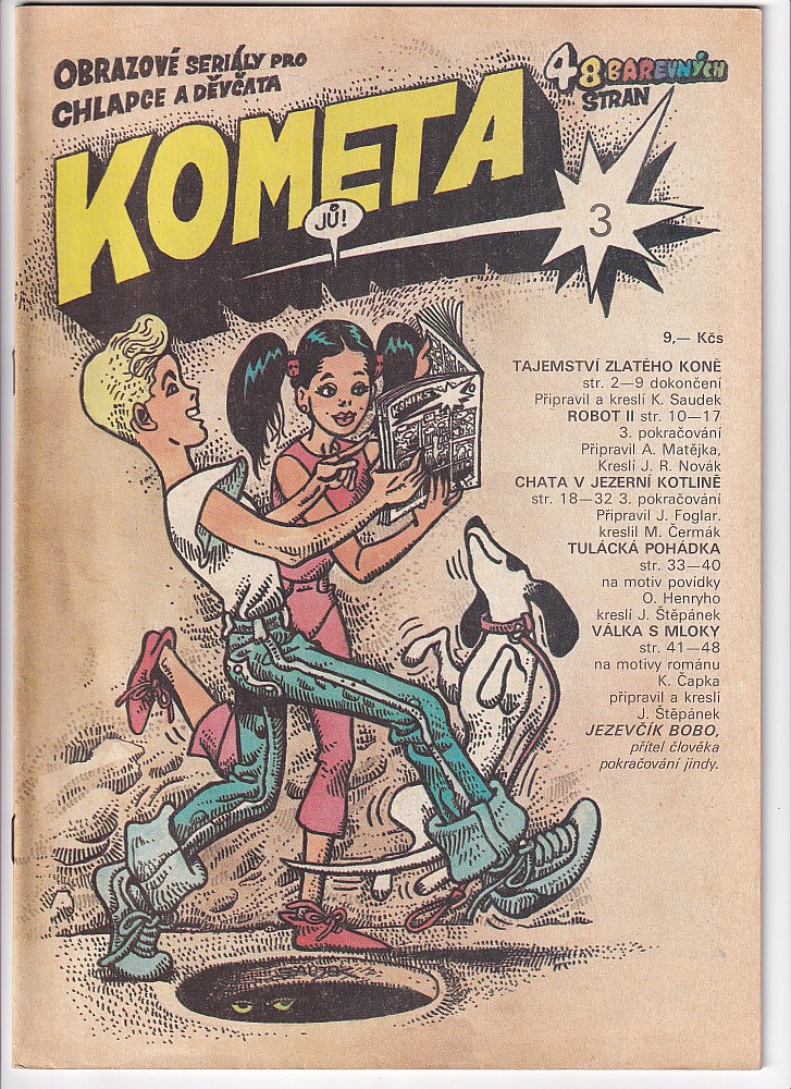 sešit, třetí číslo, il. a dokončení komiksu Tajemství zlatého koně K. Saudek, vyd. Svépomoc, Praha, 1989, sešit, 48s., pěkný stav, Aantiqari.at Radhošťská,