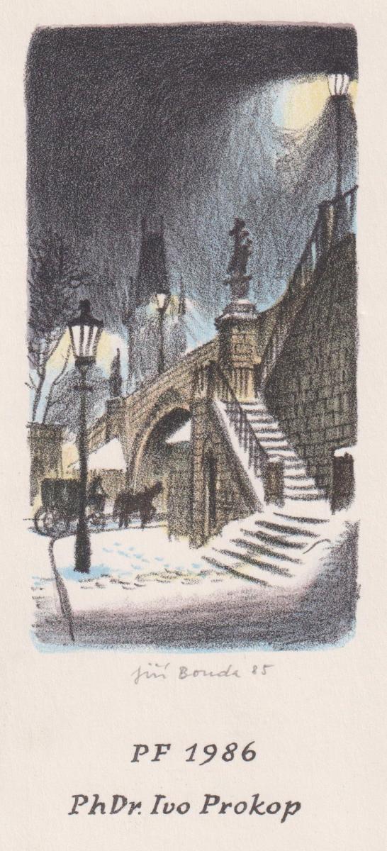 litografie, 1985, 12,7 x 6,6 cm, sign. DU Jiří Bouda 85, Antiqari.at Radhošťská, antiqari.at Radhošťská, studium na Státní grafické škole v Praze, žák prof. K. Svolinského na UMPRUM tamtéž