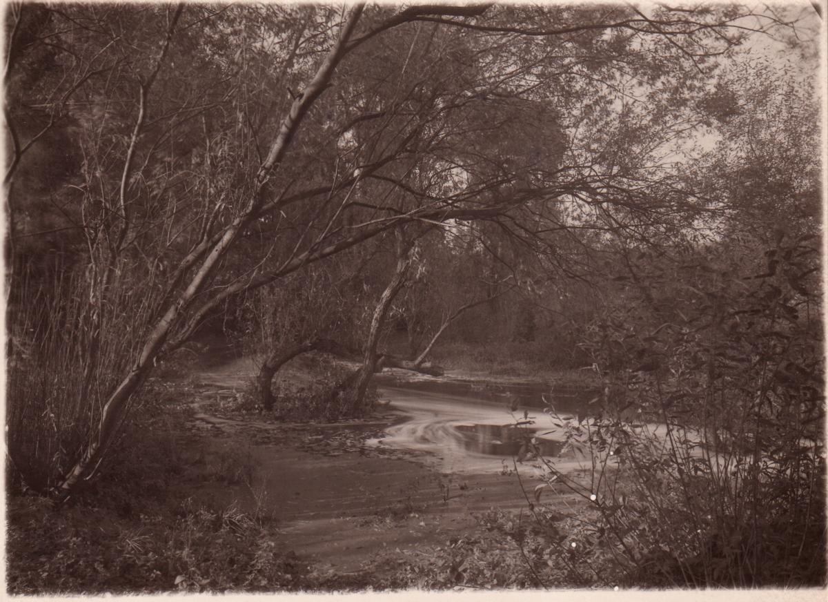 bromostříbrná fotografie, 10,8 x 14,6 cm, sign. a posáno na zadní straně, na zadní straně text: Milý pane malíř a pani malířova tuto neděli eště nemohu k Vám přijít anšto budu střílet todleto jaro. Upřímně Váš Sudek (Poznámka: "Střílet" bylo Sudkovým žargonem pro fotografování.), Provenanc…