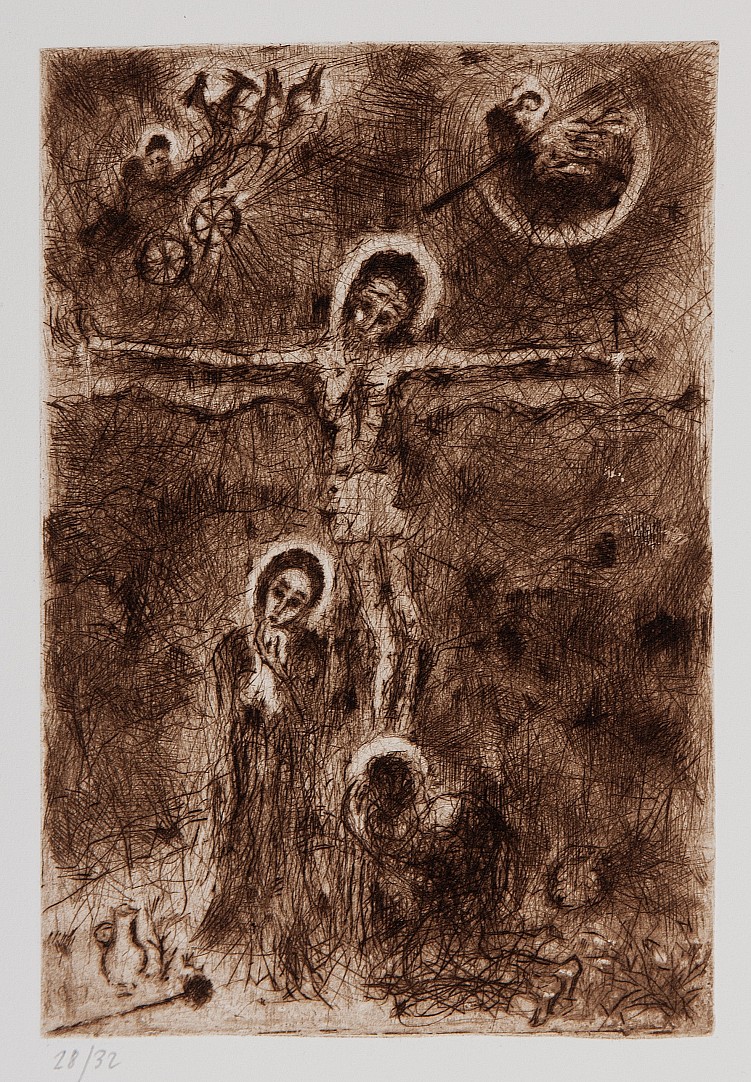 suchá jehla, 15,5 x 23 cm, č. 28/32, otisk z původní desky z roku 1982, soukromé studium, člen SČUG Hollar, Svazu čsl. výtvarných umělců a Syndikátu českých spisovatelů