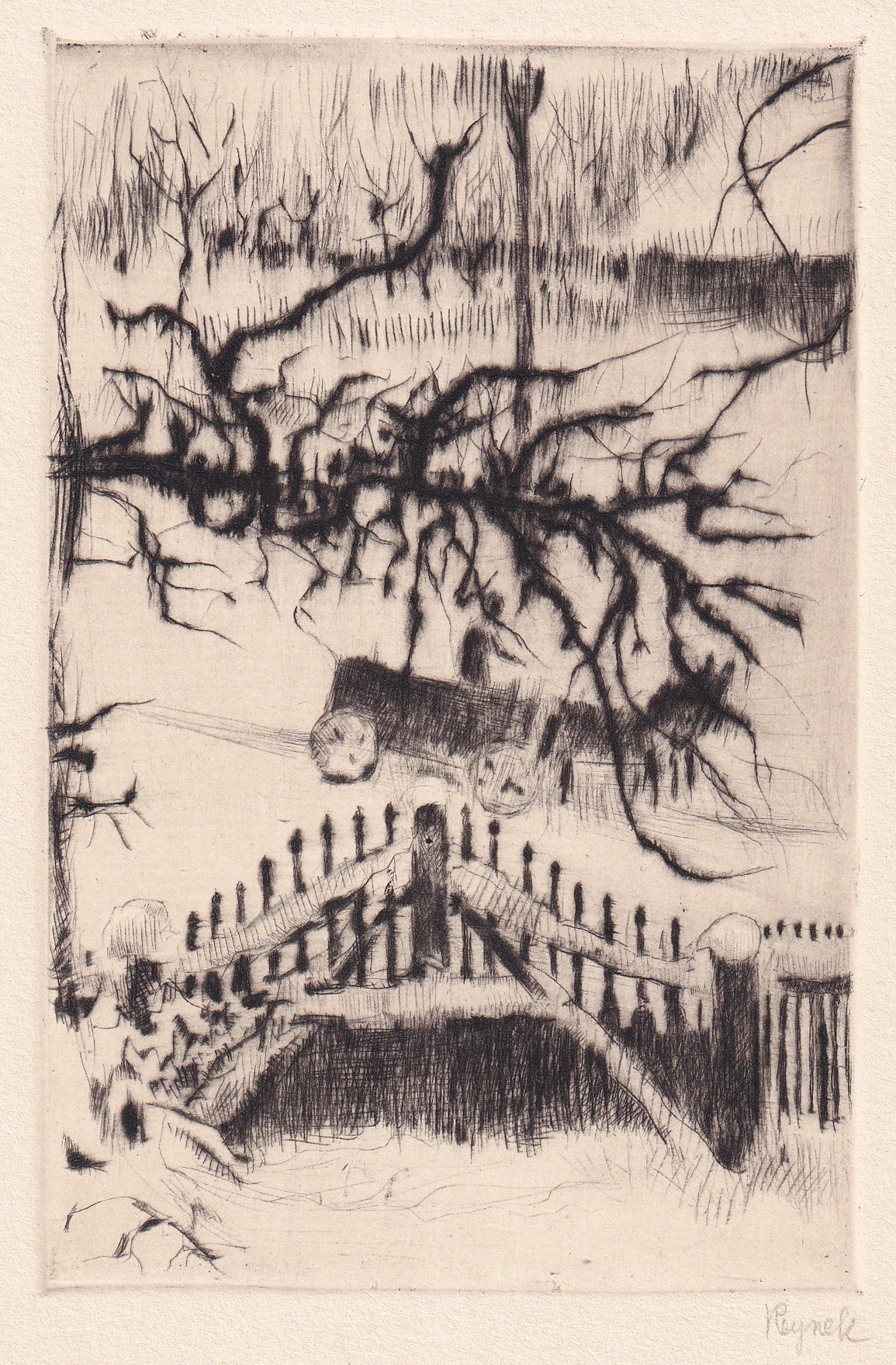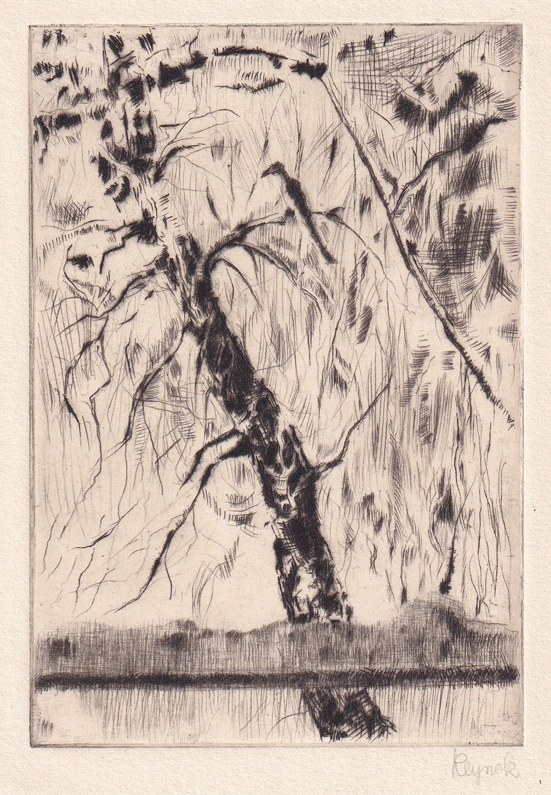 suchá jehla, 1941, 12,3 x 8,5 cm, sign. PD Reynek, č. 32/100, Antikvariát Dlážděná, soukromé studium, člen SČUG Hollar, Svazu čsl. výtvarných umělců a Syndikátu českých spisovatelů