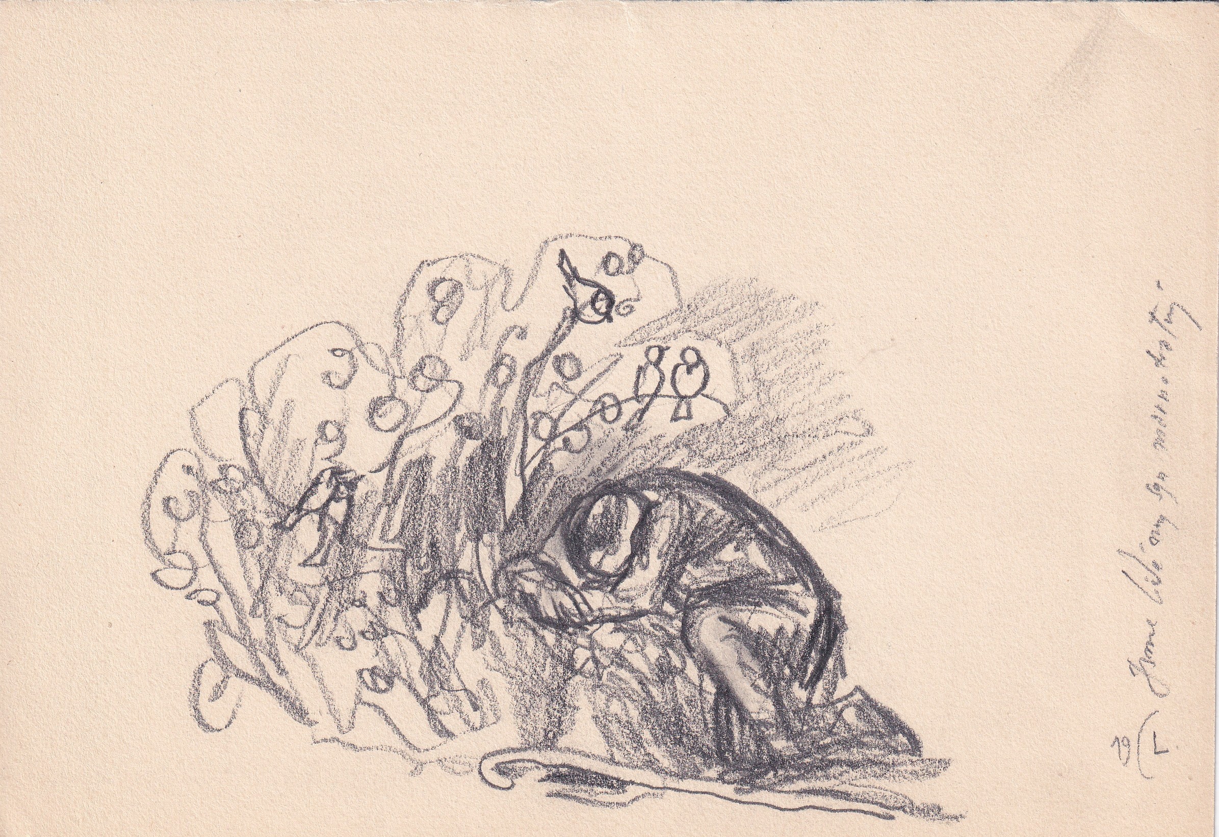 tužka, papír, 1950, 14,9 x 20 cm, Provenance: Antiquarian Dlážděná, studied at the atelier of B. Dobias at The Secondary Technical School of Ceramics in Bechyne, the disciple of prof. V. Masek and F. Kysela at The Academy of Arts, Architecture and Design in Prague, prof. M. Svabinsky and T. F. Simon…