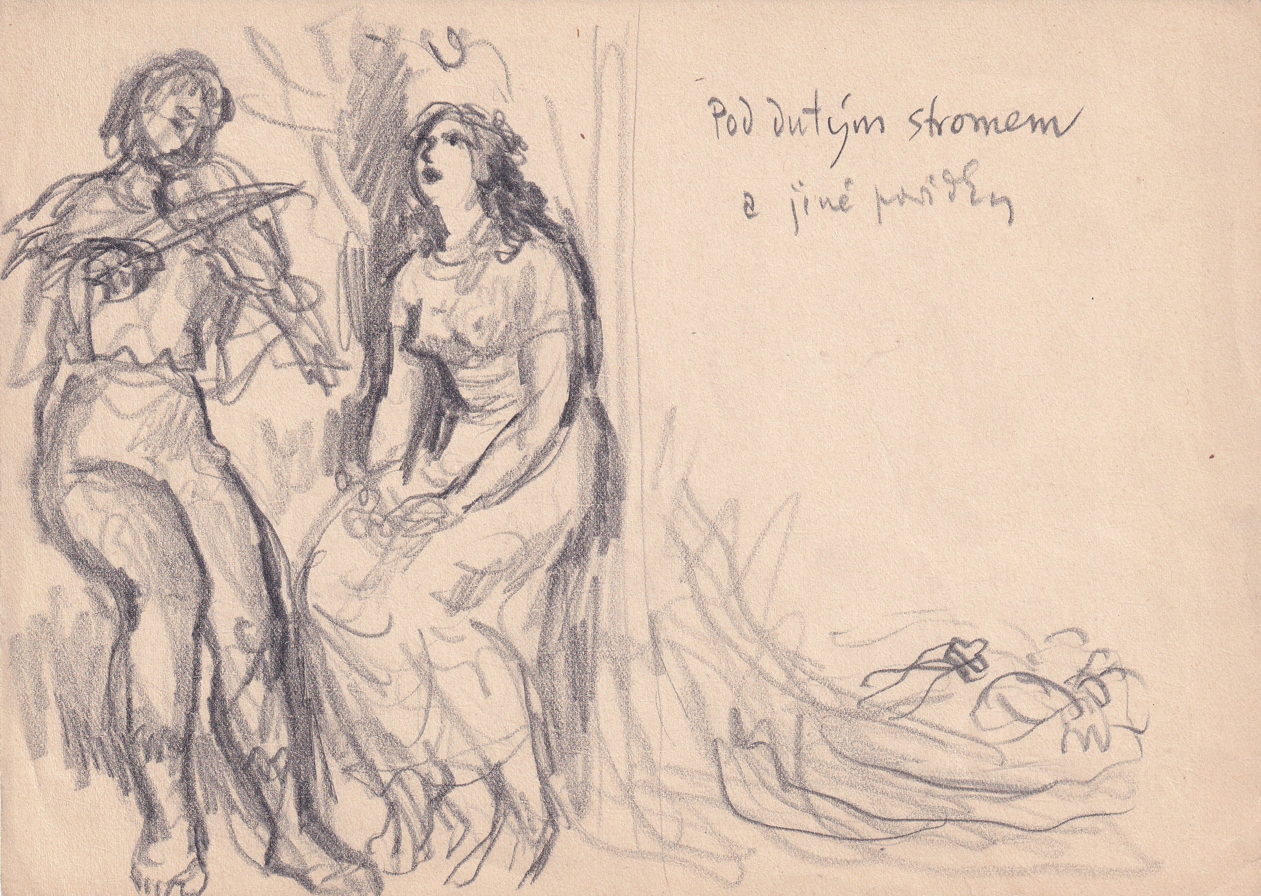 tužka, papír, 27 x 17,6 cm, mírně zašpiněný papír, Provenance: Antiquarian Dlážděná, studied at the atelier of B. Dobias at The Secondary Technical School of Ceramics in Bechyne, the disciple of prof. V. Masek and F. Kysela at The Academy of Arts, Architecture and Design in Prague, prof. M. Svabinsk…