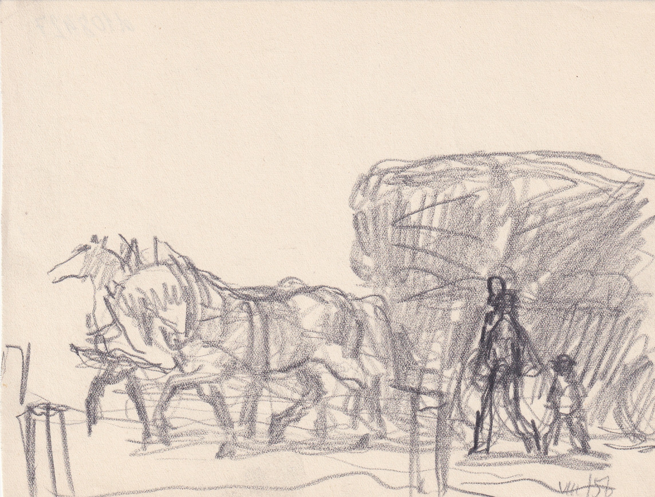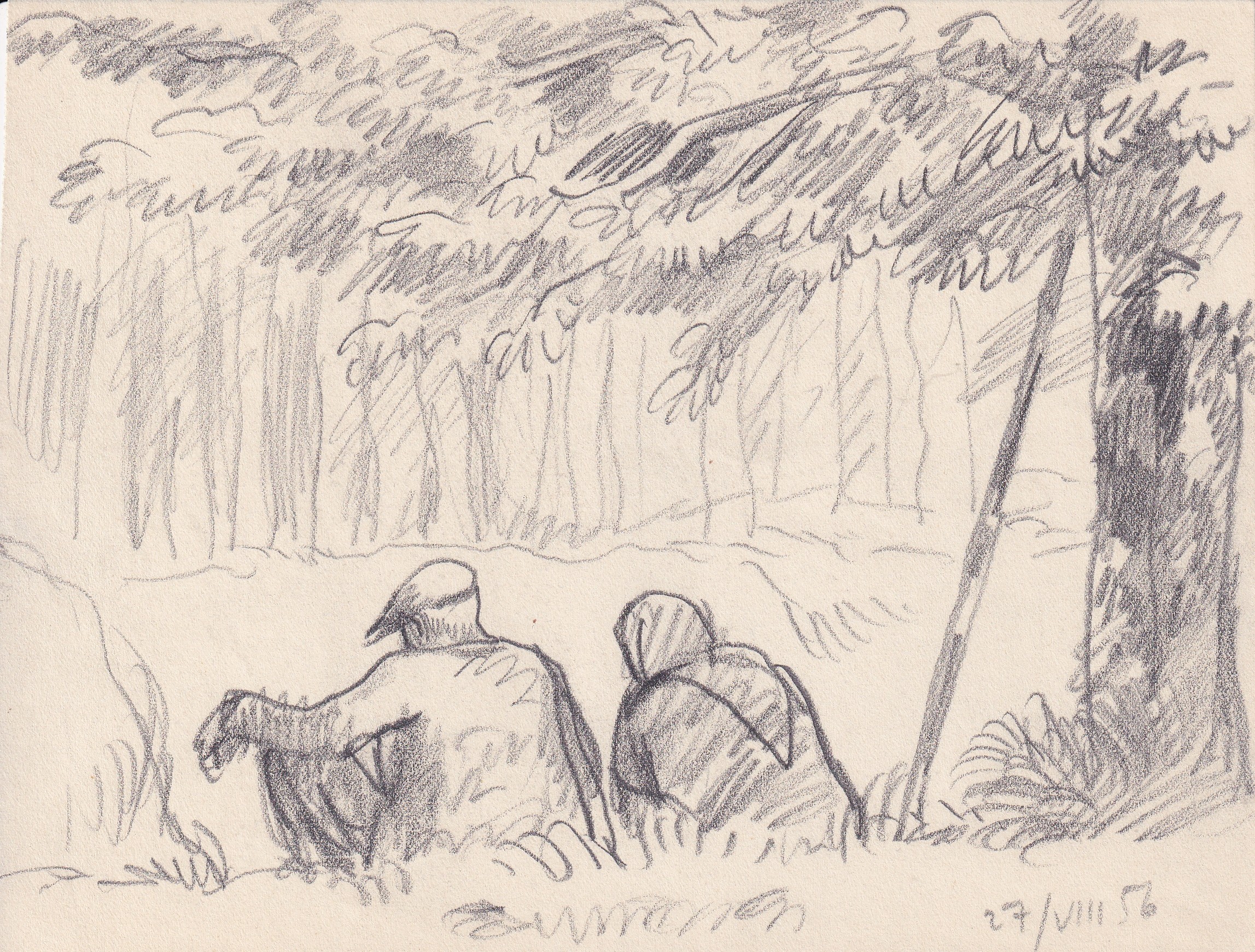 tužka, papír, 1956, 14,9 x 19,6 cm, Provenance: Antiquarian Dlážděná, studied at the atelier of B. Dobias at The Secondary Technical School of Ceramics in Bechyne, the disciple of prof. V. Masek and F. Kysela at The Academy of Arts, Architecture and Design in Prague, prof. M. Svabinsky and T. F. Sim…