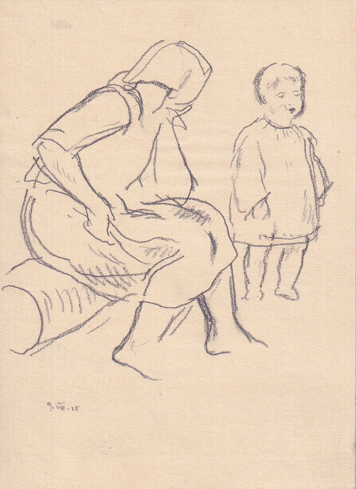 tužka, papír, 1925, 16,2 x 12,1 cm, Provenance: Antiquarian Dlážděná, studied at the atelier of B. Dobias at The Secondary Technical School of Ceramics in Bechyne, the disciple of prof. V. Masek and F. Kysela at The Academy of Arts, Architecture and Design in Prague, prof. M. Svabinsky and T. F. Sim…