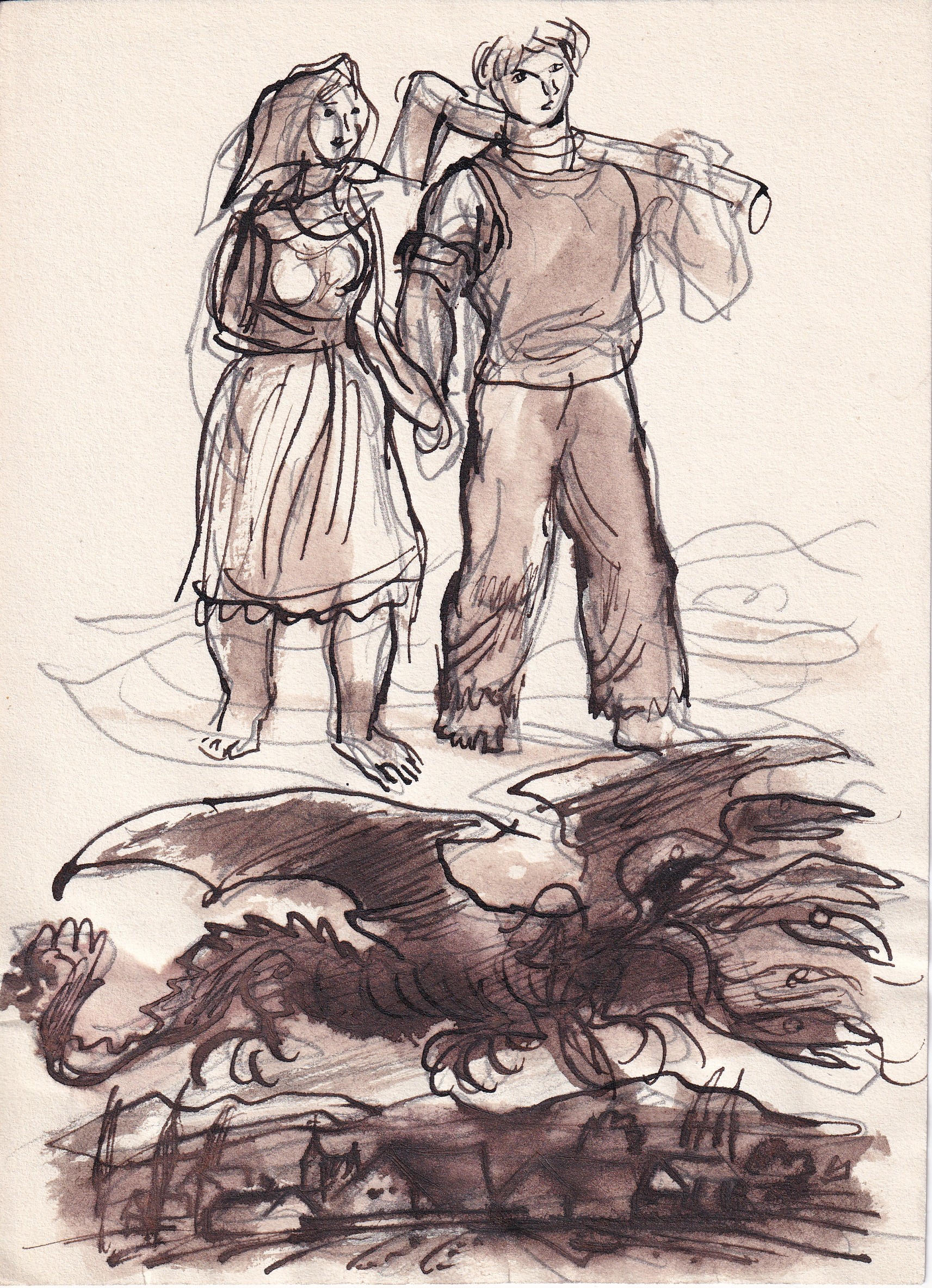 Drak a odvážný mládenec se svou milou
