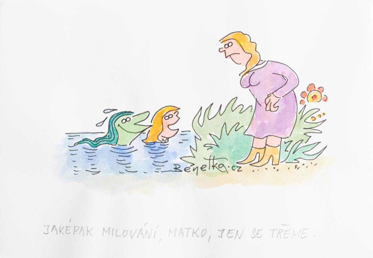 tuš, akvarel, tužka, papír, 14,9 x 21 cm, sign. PD Benetka.cz, na zadní straně autorské razítko, Aantiqari.at Radhošťská,