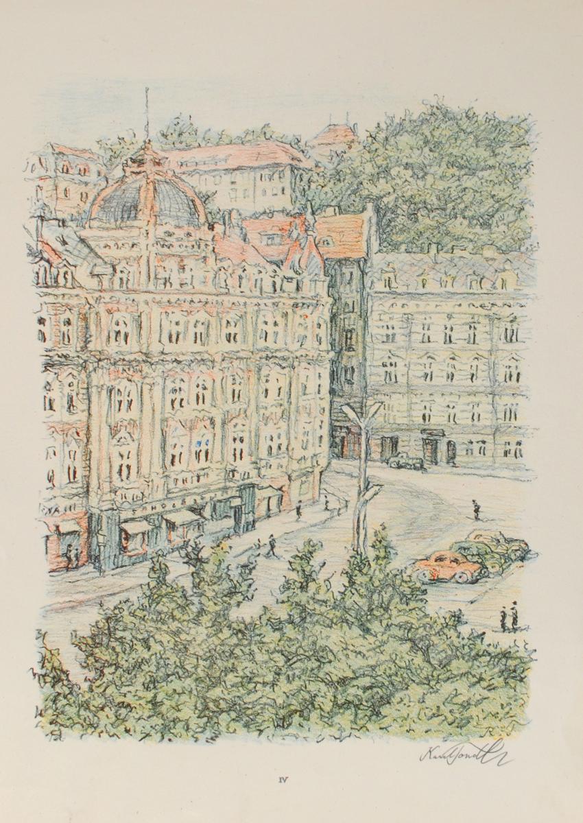 litografie, ručně kolorováno, 1956, 18,6 x 13,4 cm, sign. PD Karel Tondl , značeno v desce LD Tondl 1956, pravý hoprní růžek papíru pokrčený, Aantiqari.at Radhošťská, , the disciple of prof. J. Loukota, V. Bukovac, J. Preisler and M. Svabinsky at The Academy of Fine Arts in Prague, studied History o…