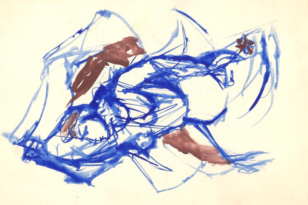 tuš, akvarel, papír, 27,5 x 20 cm, lehce zašlý papír, PD a LD stopa po lepící papírové pásce, Aantiqari.at Radhošťská,