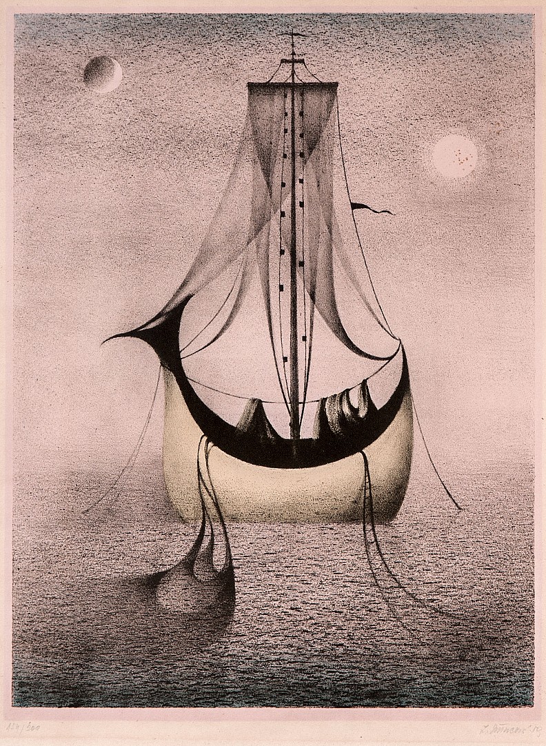 litografie, 1959, 39 x 58,5 cm, sign. PD L. Jiřincová 59, rám, č. 154/200, žákyně prof. T. F. Šimona na AVU v Praze, členka SČUG Hollar, Spolku přátel exlibris a drobné grafiky a Spolku českých bibliofilů