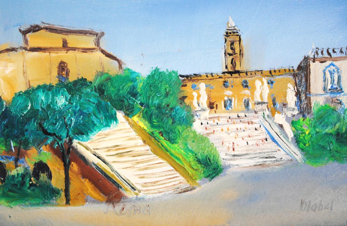 olej, papír, 9,8 x 15 cm, sign. PD Dlabal, Antiqari.at Radhošťská, antiqari.at Radhošťská, maloval s A. Doležalem a L. Musilem, největší úspěch zaznamenal v Japonsku