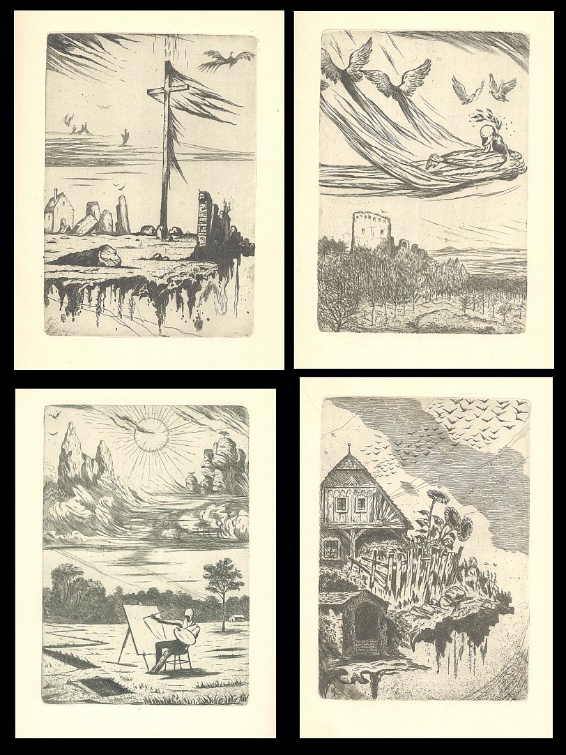 bibliofilie, sign. lept, il. v textu a podp. v tiráži J. Konůpek, vyd. J. Picka, 1940, ex. 3/85 s podp. autora v tiráži, ruční papír, volné archy v pův. ob., bez paginace, velmi dobrý stav, Aantiqari.at Radhošťská, , the disciple of prof. Koula and Schultz, Bukovac and Pirner