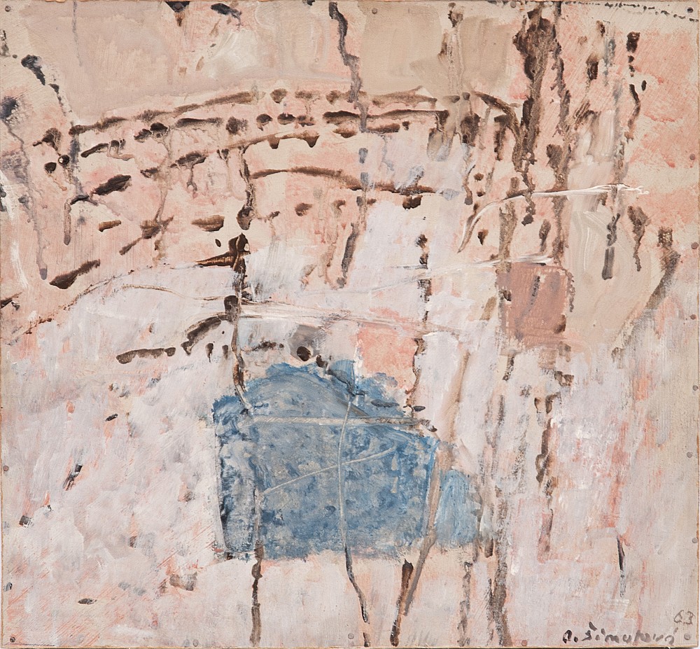 olej, karton, 1963, 31,5 x 34 cm, sign. PD A. Šimotová 63, lišta, autorka patří mezi nejrespektovanější umělce, kteří se svou tvorbou podíleli na zvratu dobově prosazovaného socrealismu k modernistickým tendencím. Jako členka UB12 se účastnila vzniku prvních tvůrčích skupin. Její tvorba patřila vždy…