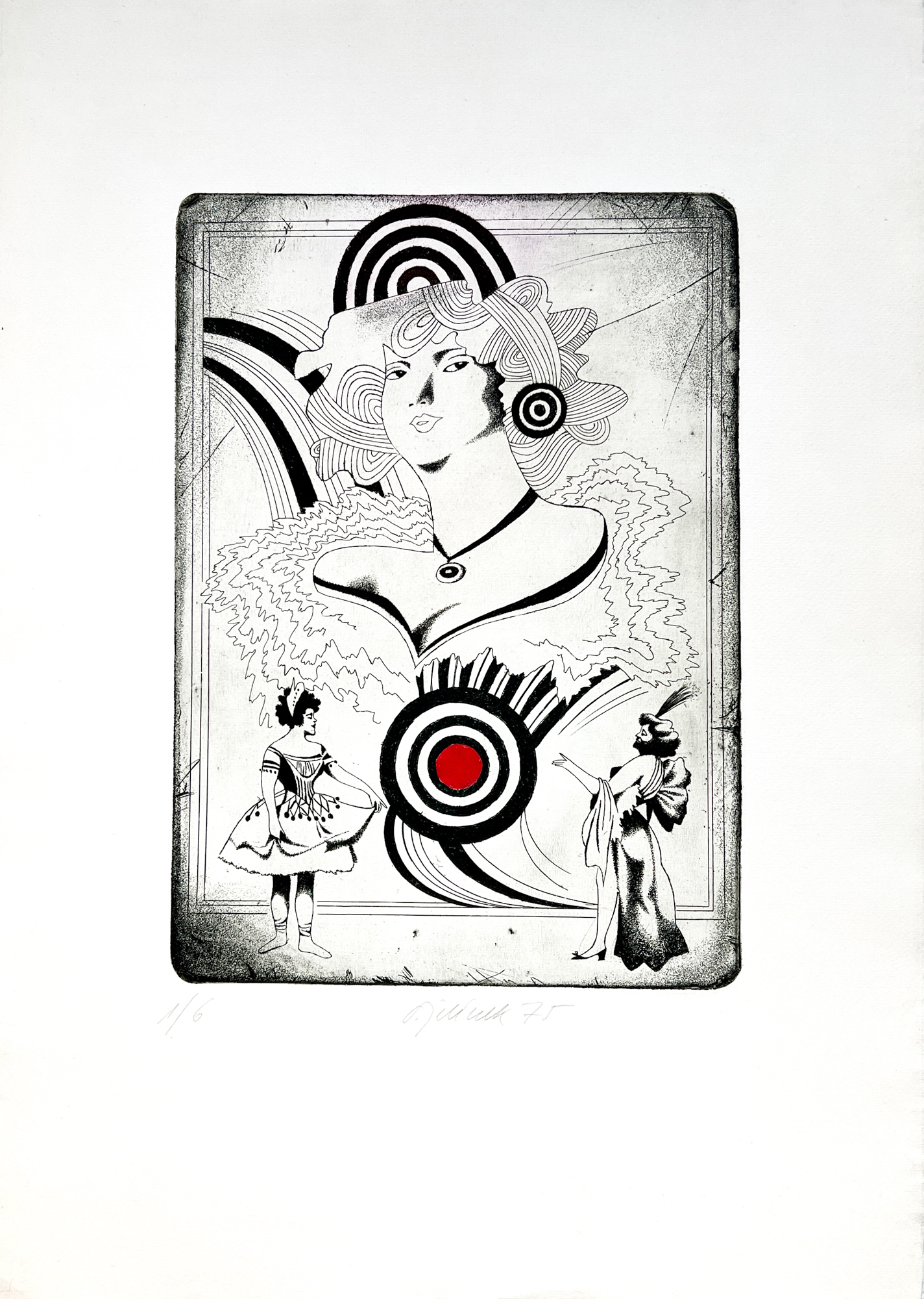 suchá jehla, akvatinta, 1975, 35,7 x 25,7 cm, sign. DU O. Jelínek 75