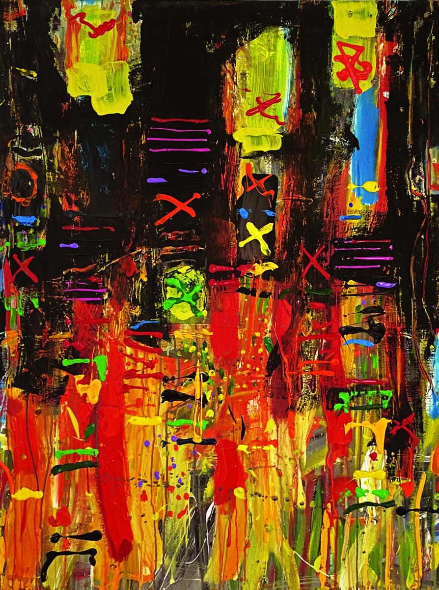 akryl, plátno, 2025, 90 x 120 cm, známý malíř a ilustrátor, absolvent PdF - výtvarného oboru MU v Brně, na umělecké scéně se prosadil svým intelektuálním pojetím gestické malby, v rámci níž neustává v experimentu hledat nové polohy, the disciple of M. Rostinska, P. Brazda a J. Zezula