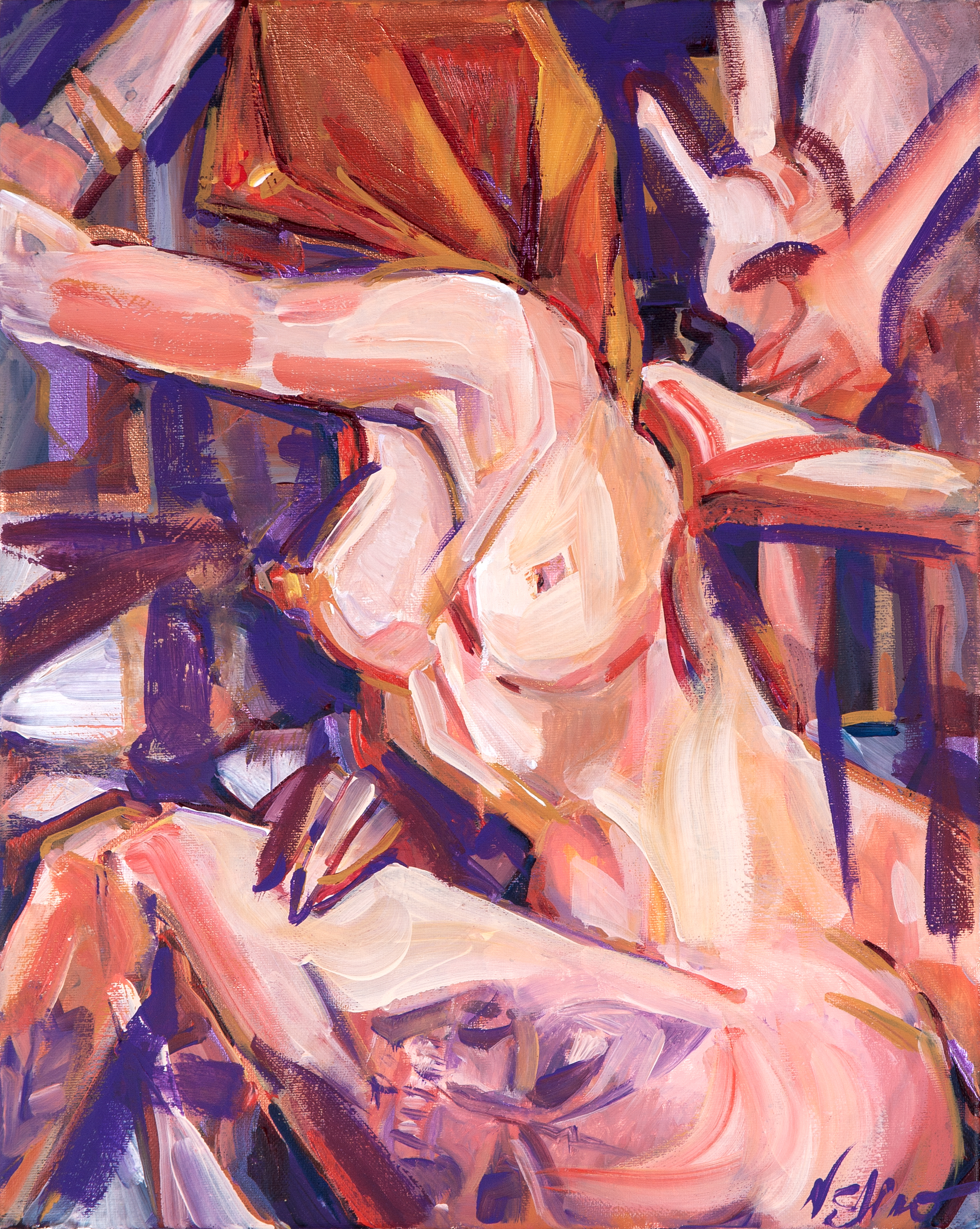 akryl, plátno, 2025, 51 x 40,5 cm, sign. PD N Elina, klínový rám, Russian born artist Natalia Elina was educated at the All-Russia Institute of Cinematography (VGIK) in Moscow. She started her career at Soyuzmultfilm animation studio, but moved to the US in 2003, where she continued creating animati…
