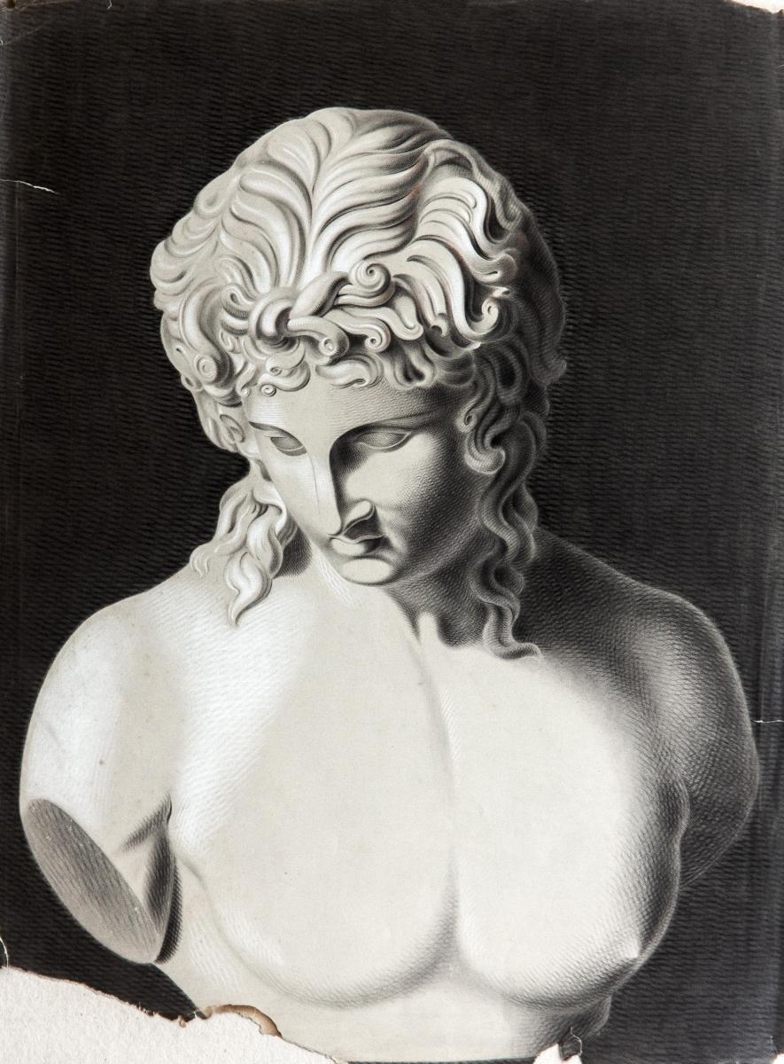tužka, pastelka, papír, 60,2 x 46 cm, potrhané dva rohy, Aantiqari.at Radhošťská,