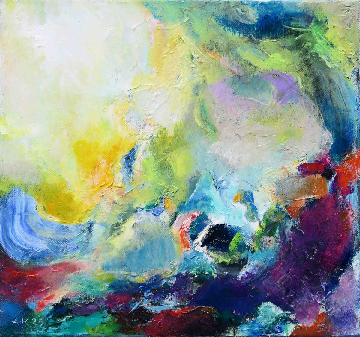 olej, akryl, plátno, 2025, 30 x 32 cm, monogr. LD AK 25, vzadu popsáno autorem, Provenance: Antiquarian Ostrovní