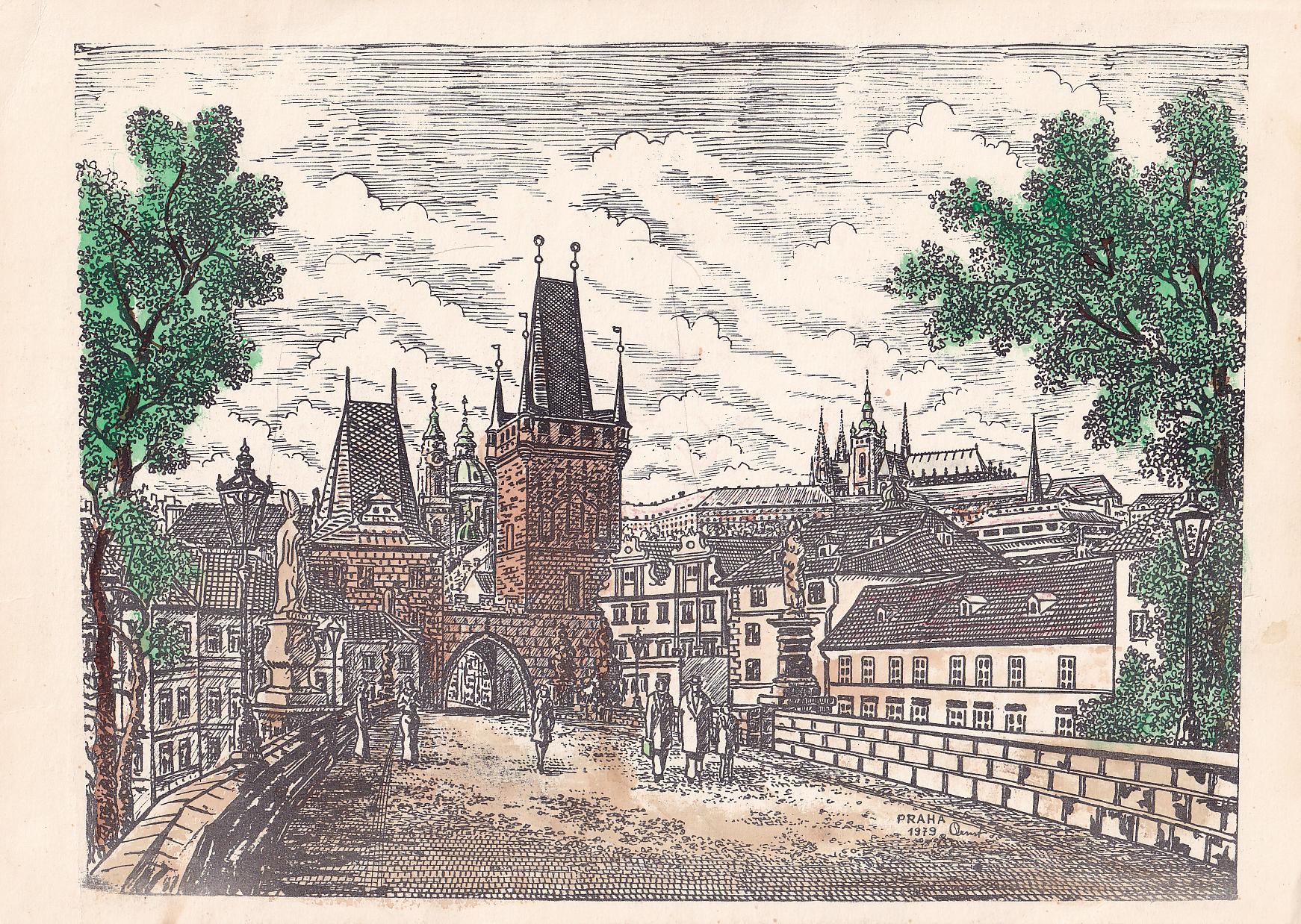 tisk, 29 x 22 cm, značeno v tisku PD V. Kubašta, Aantiqari.at Radhošťská, , the disciple of prof. O. Blazicek, Z. Wirth, A. Engel, member of The Club for Old Prague