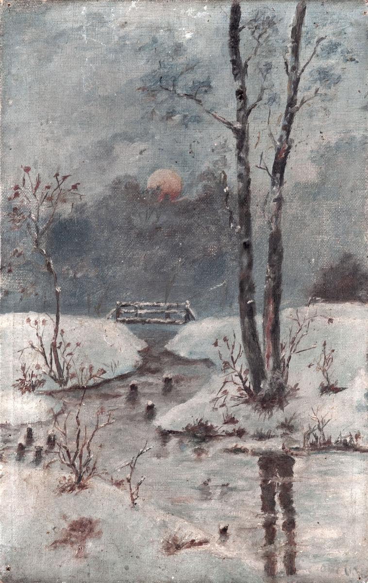 olej. plátno, 31.5 x 20.5 cm, sign. PD, klínový rám, lehce poškozeno při okrajích, Aantiqari.at Radhošťská,