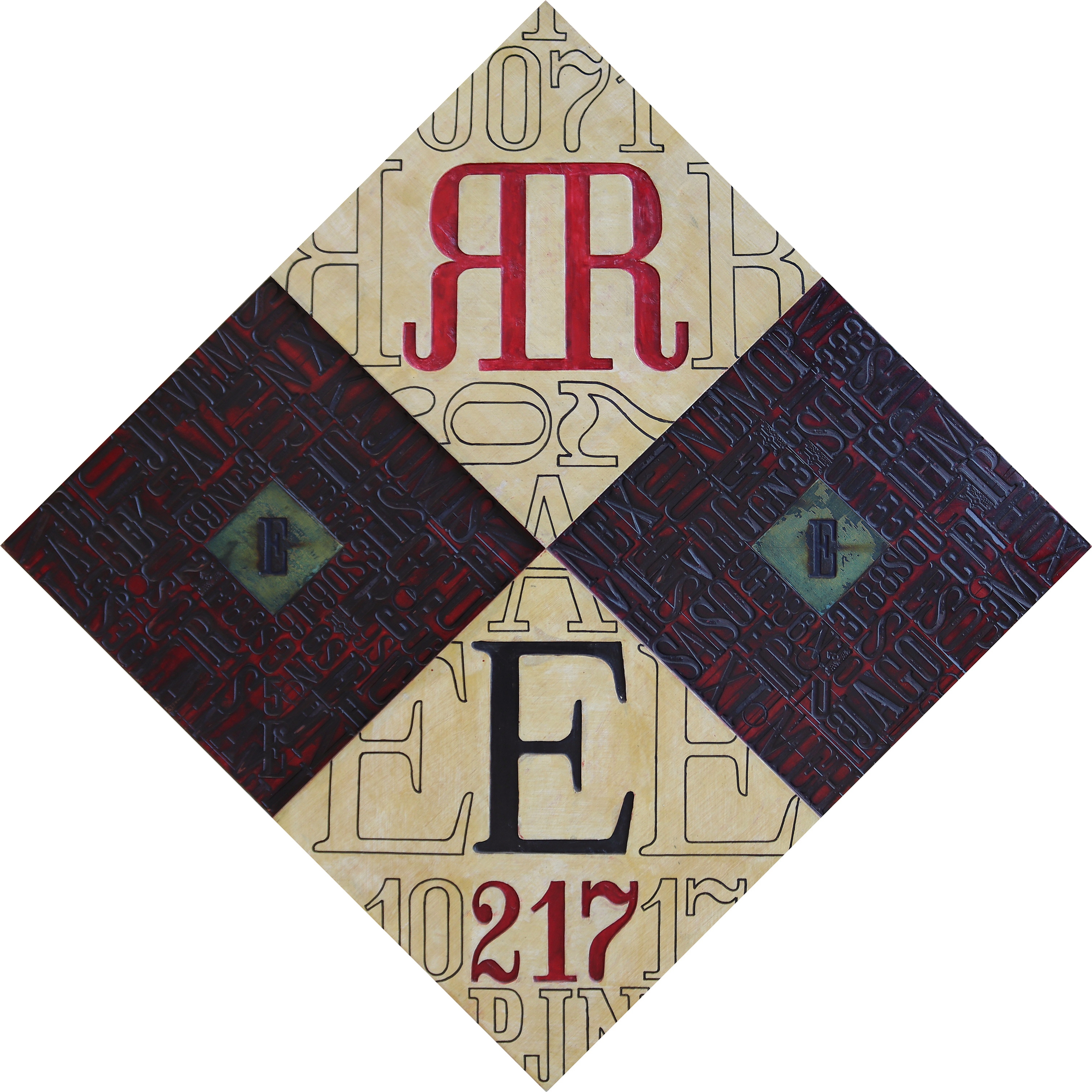 polychromovaný dřevěný reliéf, 1968, 80 x 80 cm, sign. vzadu Eduard Ovčáček 1968, tento světově proslulý výtvarník se v Čechách asi nejsystematičtěji věnuje fenoménu písma a písmových znaků. Je čelním představitelem lettrismu, a tak se v jeho dílech objevují písmové znaky ve všech formátech a techni…