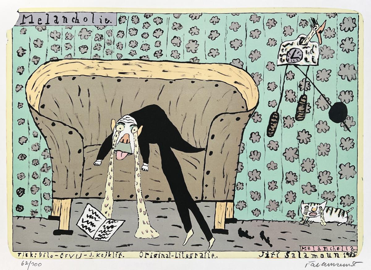 litografie, 1985, 38 x 54 cm, sign. PD Jiří Šalamoun 85, rám, č. 62/100, Provenance: Antiquarian Dlážděná, the disciple of prof. V. Silovsky and V. Pukl at The Academy of Fine Arts in Prague, prof. A. Kapr and G. K. Muller at The Academy of Graphics and Typographical Arts in leipzig, member of The H…