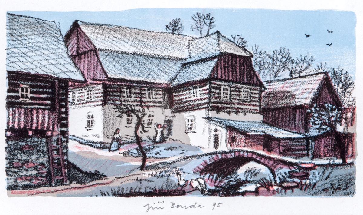 litografie, 1994, 9,5 x 14 cm, sign.LD Jiří Bouda 94, rám, Aantiqari.at Radhošťská, , studied at The State Graphic School in Prague, the disciple of prof. K. Svolinsky at The Academy of Arts, Architecture and Design in Prague