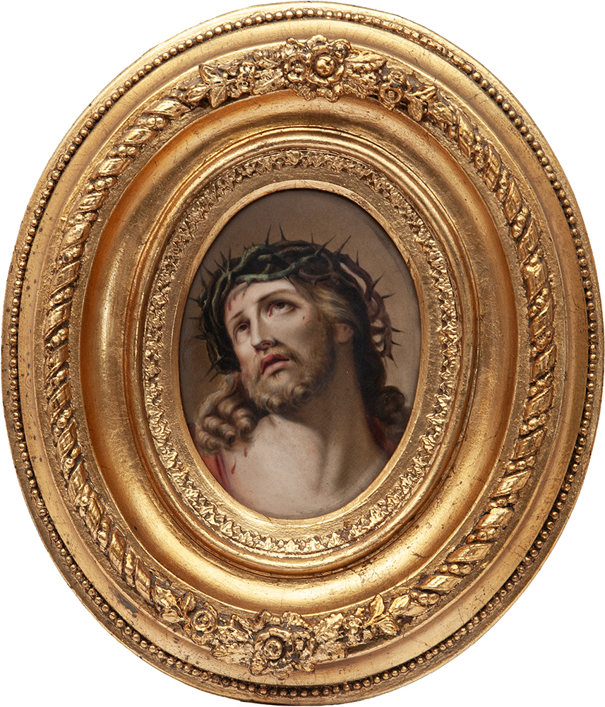 malba na porcelánu, 17,5 x 13 cm, rám, na zadní straně věnování od Marie Sýkorové, Provenance: Antiquarian Dlážděná