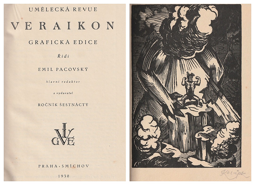 kniha, 23,5 x 15,5 cm, sign. dřevoryt J. Konůpek, kompletní ročník včetně grafických příloh, grafické přílohy: Jan Konůpek, Emil Pacovský, Pavla Vicenová Rousová, Otto Matoušek, vyd. Emil Pacovský, 1930, svázaných šest čísel v pěti sešitech, pův. obálky vevázány, clpl. převazba, dobrý stav, Antikvar…