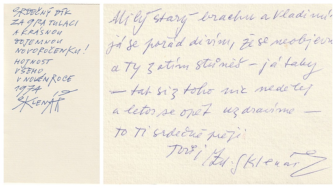 rukopis, 13,5 x 12 cm, 2x ručně psaný text na volných papírových kartách, r. 1974, dobrý stav, Antikvariát Dlážděná, žák prof. A. Hofbauera a Z. Kratochvíla na UMPRUM v Praze, člen SČUG Hollar, SVU Mánes, skupiny Balance, Litografie 5