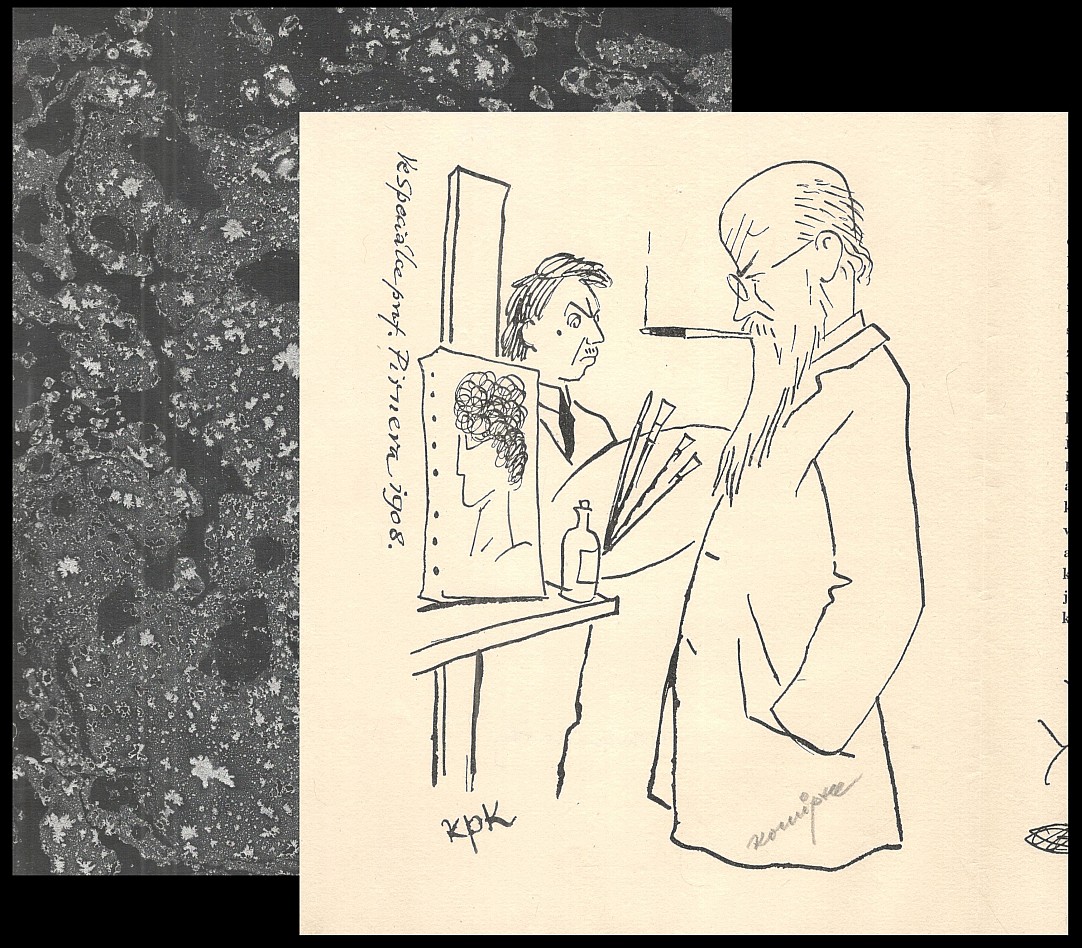 bibliofilie, obs. 12 listů s vyobr. kreseb, titulní kresbu a 2 kresby v textu P. Kotíka, vyd. Karel Janout, Kladno, 1936, ex. 58/150 se suchou pečetí vydavatele, text Fr. Kovárna, uprava M. Kaláb, pův. brož, ruční papír, 13s. + přílohy, velmi dobrý stav, Antiqari.at Radhošťská, antiqari.at Radhošťsk…