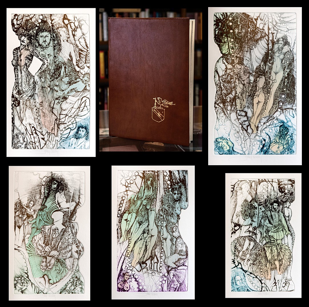 bibliofilie, 5x sign. bar. lept P. Hlavatý, vyd. Artemis, Praha, 1996, nečíslovaný exemplář (30 výtisků), ruční sazba a tisk na italském papíře Fabriano a umělecká knižní vazbu realizoval Atelier Krupka, clkžn. vazba se zlacením, bez paginace, uloženo v pův. plátěném pouzdře, výborný stav, Antiqari.…
