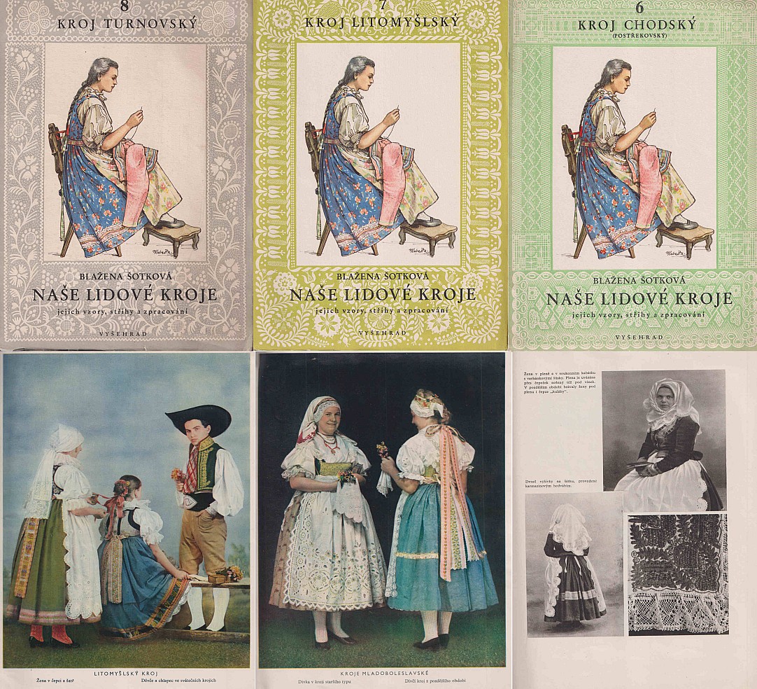 bibliofilie, kroj kozácký, 22 s.; kroj mladoboleslavský, 31 s.; kroj chodský (dolních vesnic), 29 s.; kroj dětský, 76 s.; kroj chodský (postřekovský), 28 s.; kroj litomyšlský, 29 s.; kroj turnovský, 35 s.; návrh obálky V. Kubašta, kresby a vzorové přílohy B. Šotková, četné fotografie, vydal nakladat…