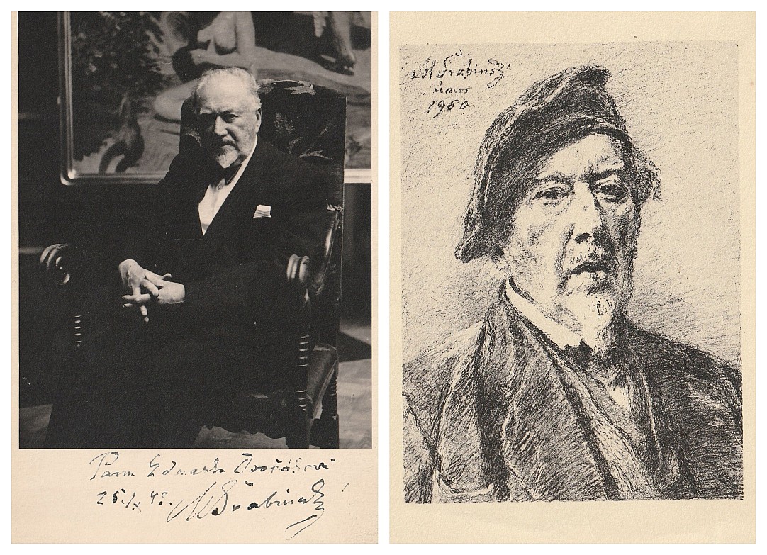 2x podpis, litografie, 18 x 12 cm, podpis na orig. fotografii, podpis na volné kartičce, přiložena pův. litografie s autoportrétem, bez sign., dobrý stav, Provenance: Antiquarian Dlážděná, the disciple of prof. M. Pirner, J. Marak and E. Karel at The Academy of Fine Arts in Prague, member of The Man…