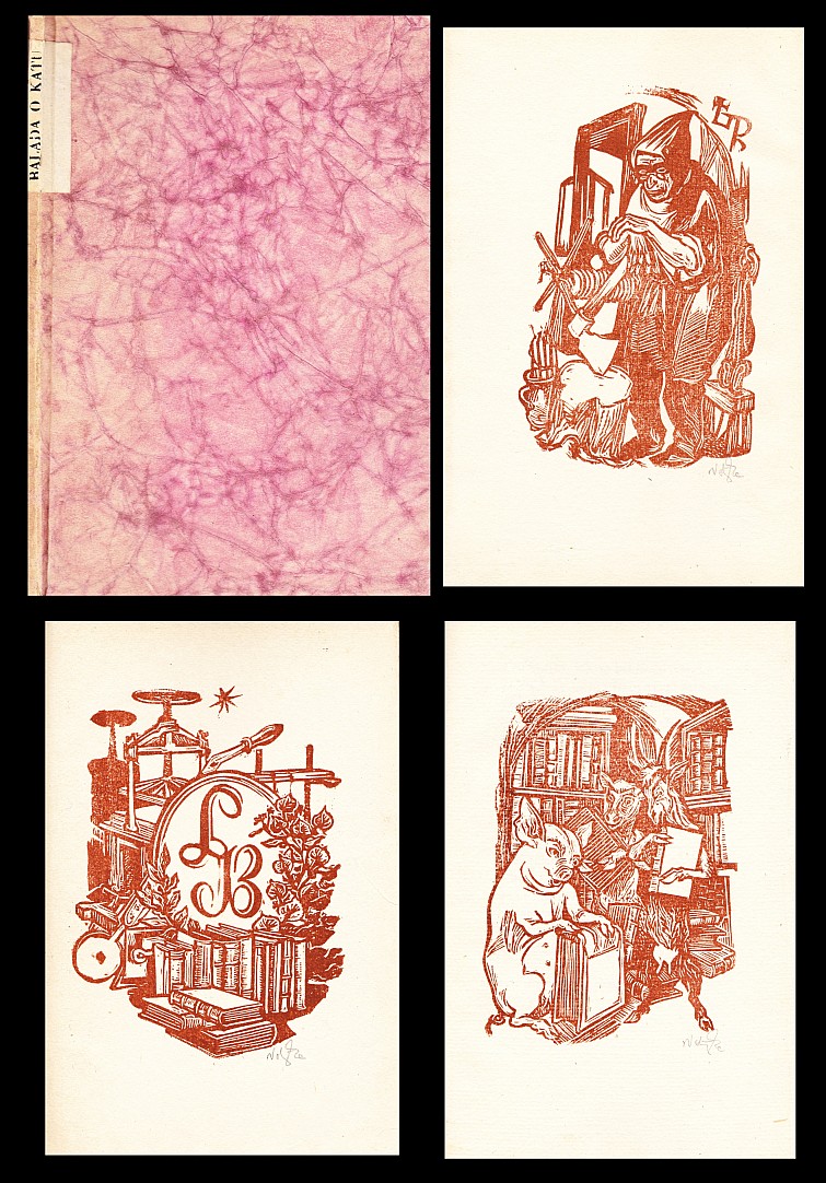 bibliofilie, 3x sign. linoryt J. Vodrážka, vyd. Ludvík Bradáč ke svým šedesátinám, Praha, 1945, 200 výtisků na ručním papíře, pův. karton. vazba, dobrý stav, Aantiqari.at Radhošťská,