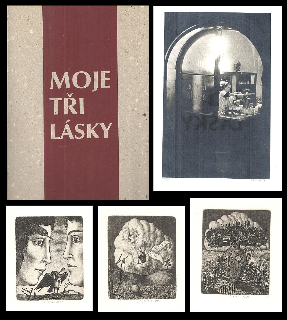 bibliofilie, 3x sign. lept J. Pileček, sign. fotografie (přetisk?) Pavel Vácha, vyd. K. Žižkovský ke svým padesátinám, Praha, 1988, ex. 59/100 na ručním papíře a s podp. autora v tiráži, volné listy v pův. ob., bez paginace, velmi dobrý stav, Aantiqari.at Radhošťská, , the disciple of prof. K. Svoli…