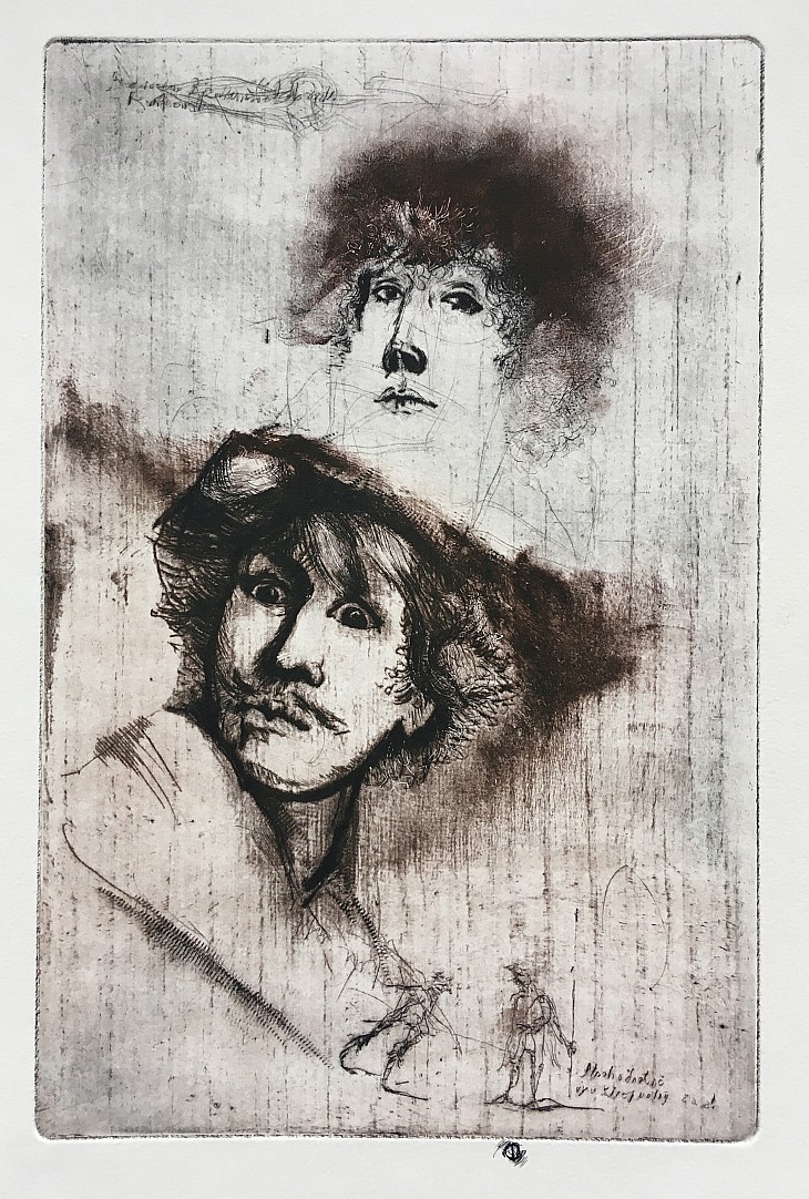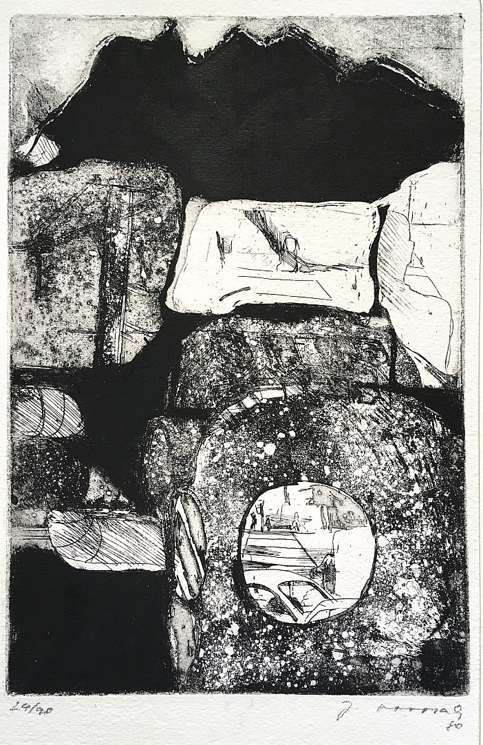 suchá jehla, kombinovaná technika, 1980, 27 x 20 cm, sign. PD Mika Jiří 80, č. 4/20, the disciple of prof. Hnizdo, member of Nova skupina