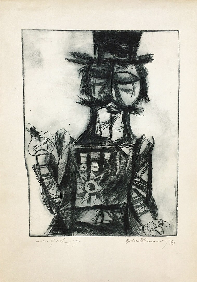 tuš, kombinovaná technika, papír; suchá jehla, 13 x 11,5; 8 x 7 cm, PD monogr. KP, disciple of Prof. G. Singier at École Nationale Supérieure des Beaux-Arts in Paris, later studied at École des Beaux-Arts St. Ouen