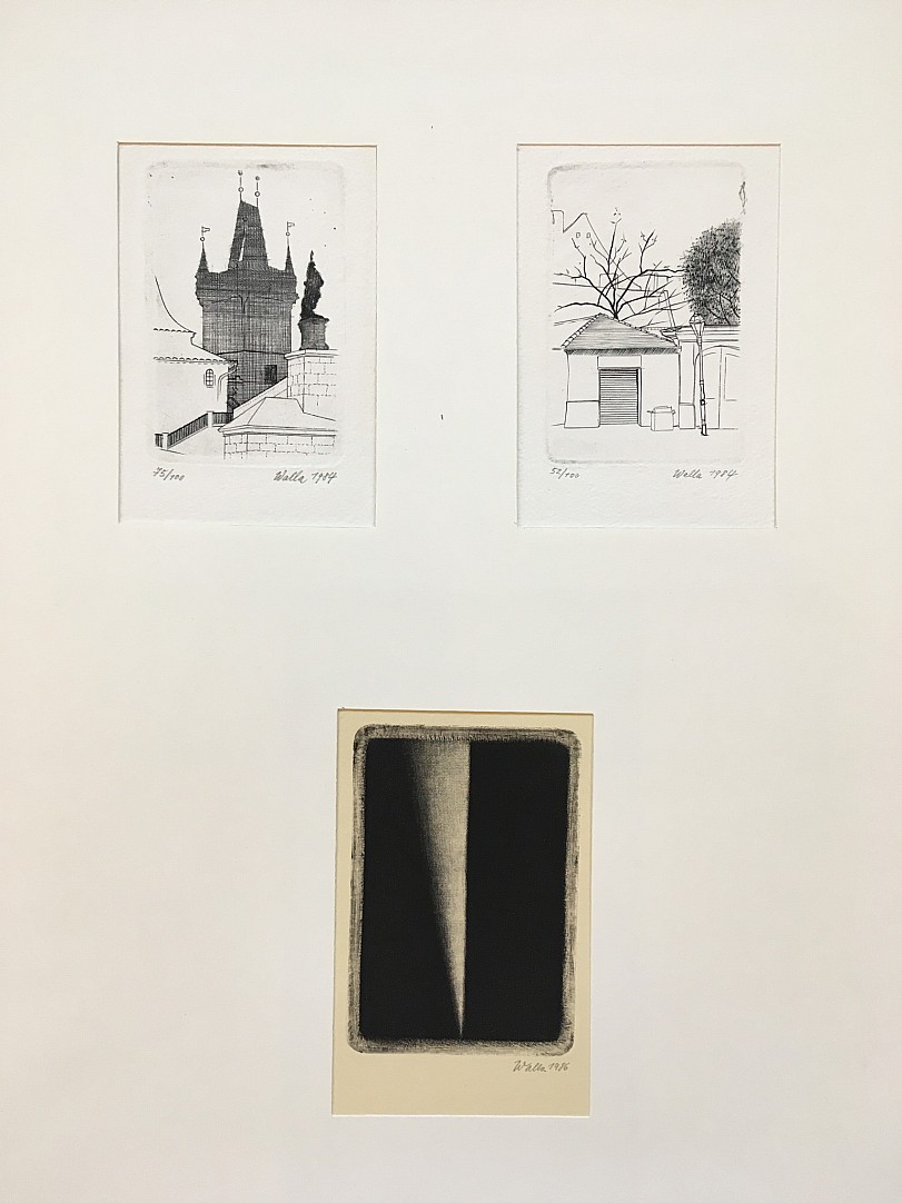 2 x suchá jehla, 1x litografie, 1984, 1984, 1986, vše ca 9,5 x 6 cm, vše sign. PD Walla, studied at The Academy of Fine Arts in Prague