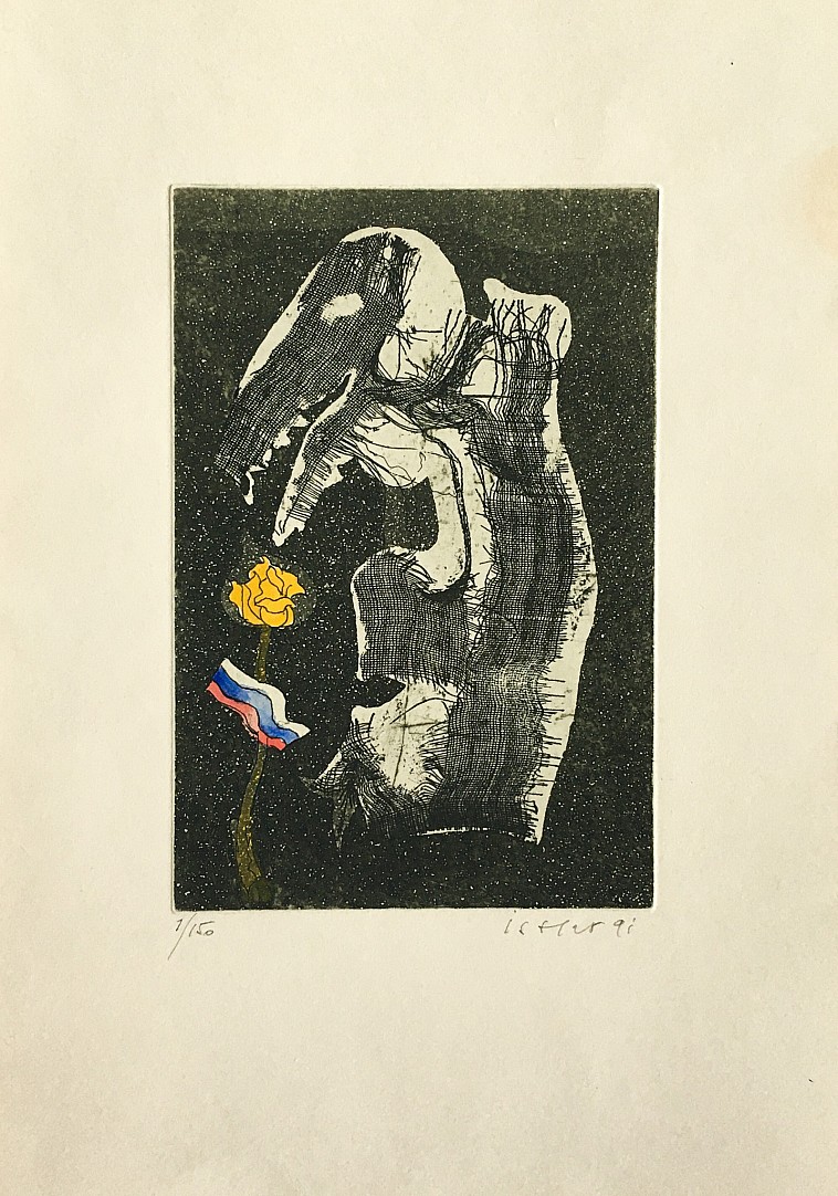 lept, kombinovaná technika, 1980, 30 x 24,5 cm, sign. PD Mika Jiří 80, č. 7/15, the disciple of prof. Hnizdo, member of Nova skupina