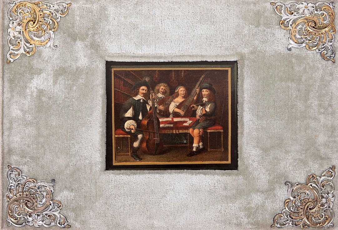 volné listy, 36 x 25,5 cm, 15x chromolitografie s motivy starých hudebních nástrojů, vyd. Paul de Wit, Leipzig, 1892, volné listy v pův. semišovém albu se vsazeným obrázkem hudebníků a zdobným kováním v rozích, album v kartonovém pouzdře, velmi dobrý stav, Provenance: Antiquarian Dlážděná