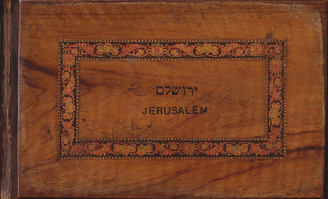 herbář, raritní suvenýr ze svaté země, herbář obsahující sušené květiny z významných posvátných míst křesťanství, dřevěné desky s ornamentálním vypalováním, popisky ve více jazycích, r. 1895, dobrý stav, Provenance: Antiquarian Dlážděná
