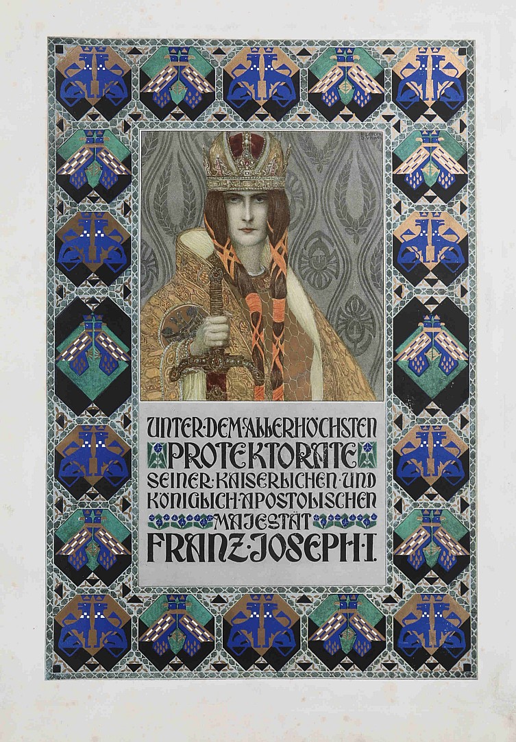 kniha, unter dem Allerhöchsten Protektorate Seiner Kaiserlichen und königlich apostolischen Majestät Franz Joseph I., literární část sestavil J.A. von Helfert, obrazovou část J. Dernjac, úprava H. Lefler, J. Urban, J.J. Tautenhayn, L. Hujer a R. von Larisch, vydal Max Herzig, 1900?, bohatě secesně z…