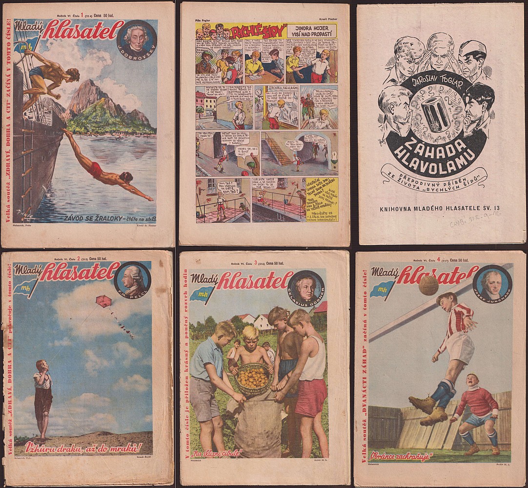 sešit, orig. sešity posledního ročníku včetně přílohy - román na pokračování J. Foglara Záhada hlavolamu - komplet a Fr. Běhounka Tajemství polárního moře - nedokončeno, komiks Rychlé šípy, v květnu 1941 vydávání nacisty zastaveno, ob. a fotografie S. Štochl, ilustrace J. Fischer a Bimba Konečný, te…