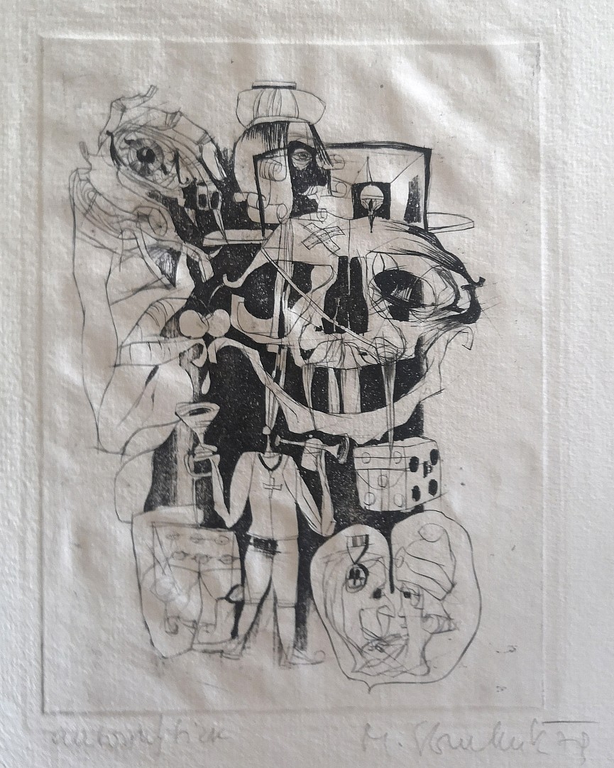 suchá jehla, kombinovaná technika, 1981, 8 x 6 cm, sign. PD Jiří Mika 81, č. 5/10, the disciple of prof. Hnizdo, member of Nova skupina