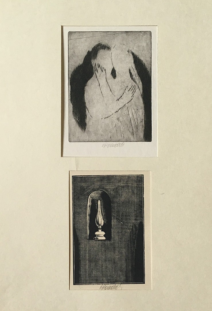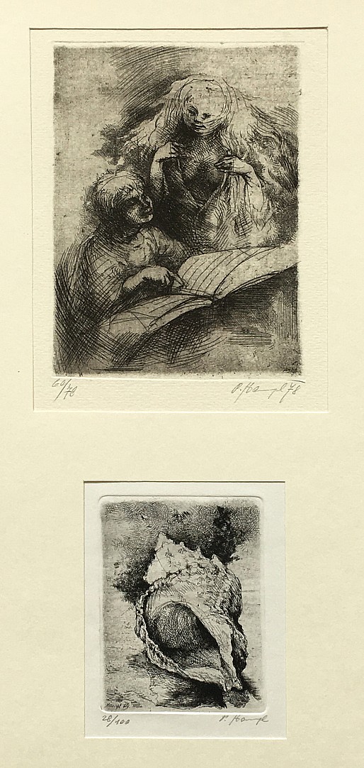 2x litografie, 1978, 12,5 x 20,5; 13 x 8,5 cm, sign. V. Polášek, the disciple of prof. P. Dillinger at The School of Artistic Crafts in Brno, prof. J. Obrovsky, T. F. Simon a F. Thiele at AVU v Praze, member of JUV and The Hollar Association of Czech Graphic Artists