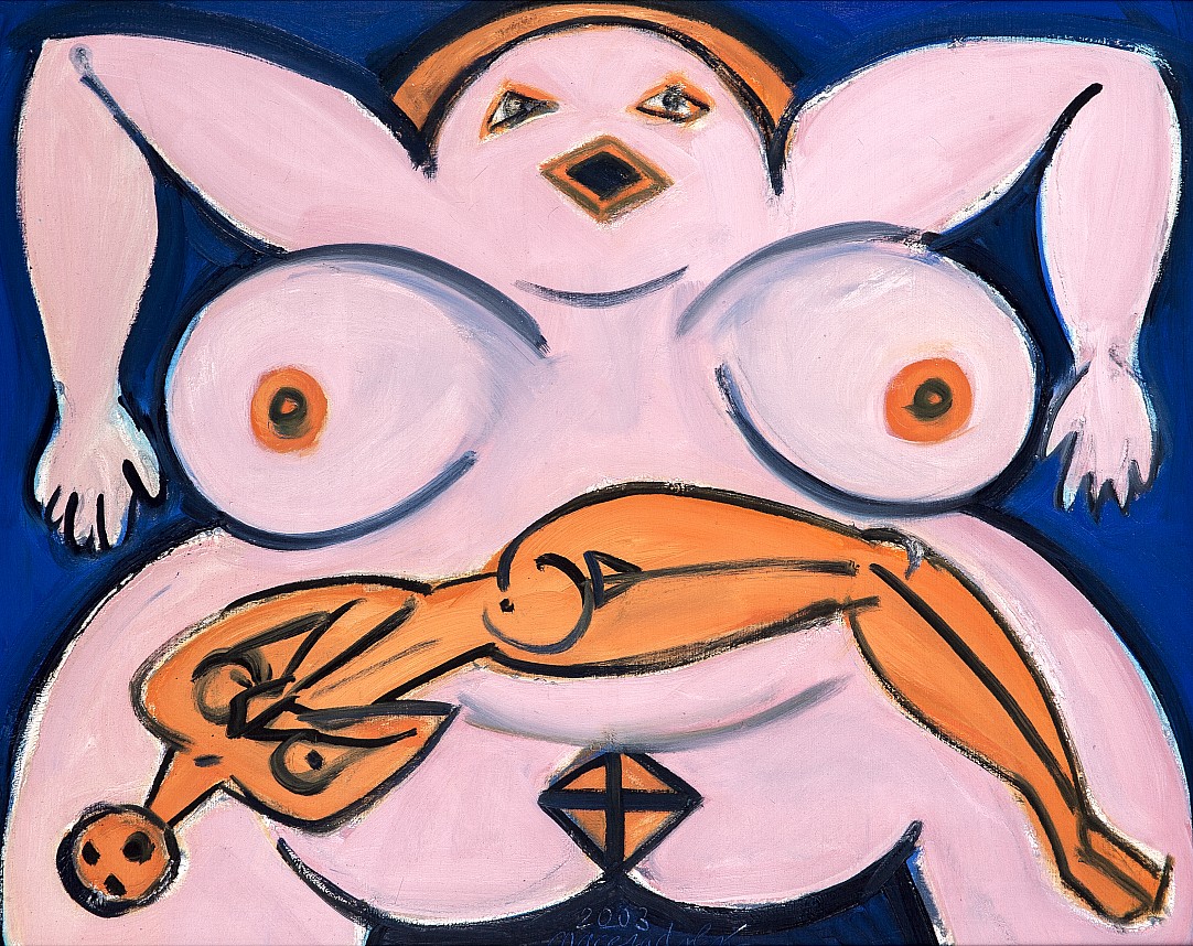 olej, plátno, 2003, 80 x 100 cm, sign. DU 2003 Načeradský, rám, námět ženy v různých podobenstvích se prolíná celým Načeradského dílem. Vedle realistických vyobrazení podle fotografií překvapoval Načeradský zpodobením žen jako agresivních kudlanek anebo naopak Venuší hodných úcty a zbožštění. Sám k …