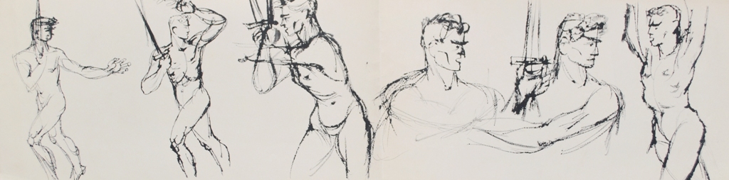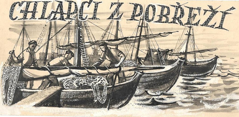 lavírovaná tuš, běloba, papír, 10 x 21 cm, návrh knižní obálky, lehce zažloutlý papír, Antiqari.at Radhošťská, antiqari.at Radhošťská