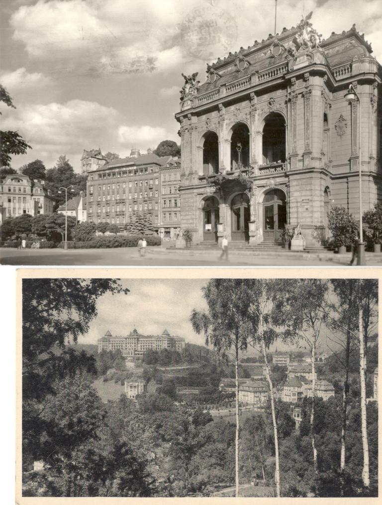 2 x pohlednice z Karlových Varů (Hotel Imperial, Lázně V.)