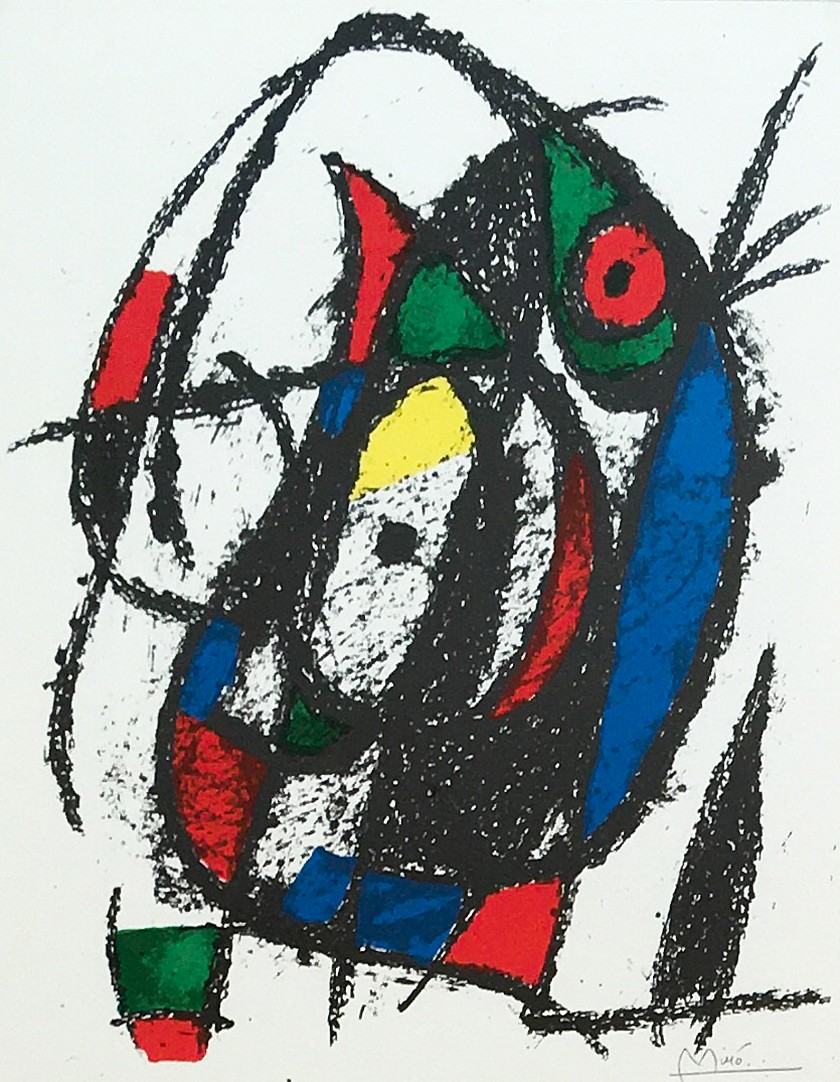litografie, 31,5 x 24,5 cm, značeno (?) Miro, rám, tištěno Mourlot Fréres, Paříž, studium na Škole umění v Barceloně, člen Pařížské surrealistické skupiny